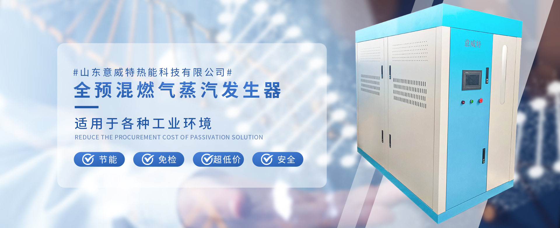 山東意威特熱能科技有限公司研發生產銷售:全預混蒸汽發生器,具有節能、超低氮NOX排放、低噪音、水容量少、啟動快、重量輕等特點。適用于各種工業環境、節能、免檢、超低氮、安全。